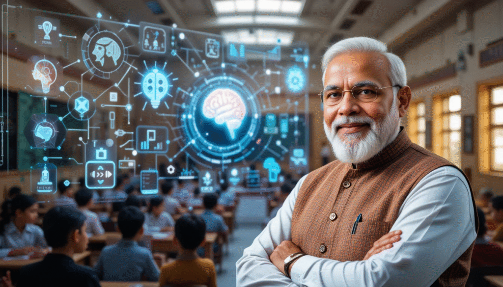मोदी सरकार ने AI को बढ़ावा देने के लिए कई स्कीम्स लॉन्च की हैं। **National AI Strategy** और **India AI Mission** के तहत सरकार ने 2025 में ₹10,000 करोड़ का बजट रखा है। इसका मकसद AI रिसर्च, स्टार्टअप्स, और स्किल डेवलपमेंट को सपोर्ट करना है। ‘AI for All’ प्रोग्राम ने स्कूलों और कॉलेजों में AI एजुकेशन को बढ़ावा दिया है।